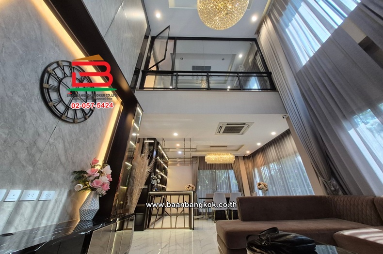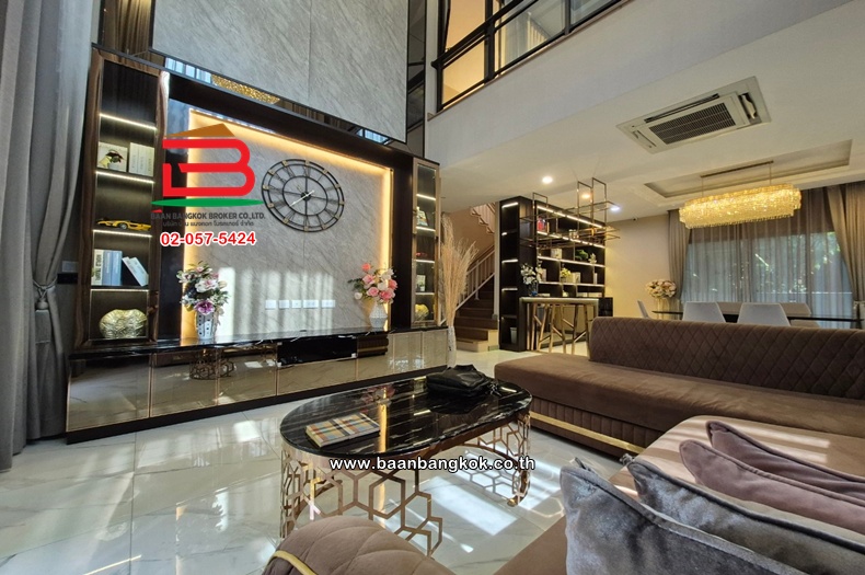 การตกแต่ง : บ้านตกแต่งสไตล์โมเดิร์นสวยหรู หน้าบ้านไม่ชนกับใคร ห้องรับแขกเพดานสูงโปร่ง ภายในบ้าน ตกแต่งบิวท์อินทั้งหลัง เฟอร์นิเจอร์ตกแต่งครบ มีครัวไทย-ฝรั่ง ต่อเติมโรงจอดรถ สามารถจอดในบ้านได้ 4 คัน หน้าบ้านอีก 6 คัน พร้อมแอร์ 6 เครื่อง มีสวนภายในบ้าน สิ่งอำนวยความสะดวก อาทิ รปภ.24 ชม.,กล้องวงจรปิด,สนามเด็กเล่น, สระว่ายน้ำ