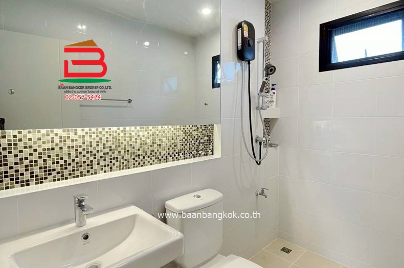 การตกแต่ง : ต่อเติมครัวไทยหรือลานซักล้างได้ ห้องรับแขกกว้าง ปูพื้นด้วยกระเบื้องแกรนิตโต้ ห้องครัวในบ้านบิ้วอินท์ แอร์ 5 เครื่อง เครื่องทำน้ำอุ่น 3 เครื่อง ปั้มน้ำ+แทงค์น้ำ ผ้าม่านกัน uv ทั้งหลัง ครัว ชั้นวางของ ตู้เสื้อผ้า บิ้วอินท์ เฟอร์นิเจอร์ครบพร้อมอยู่
