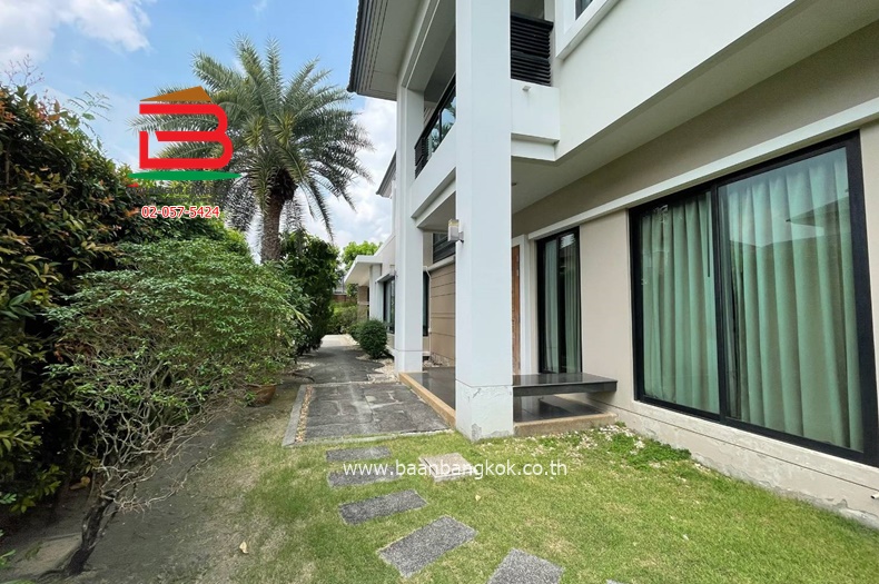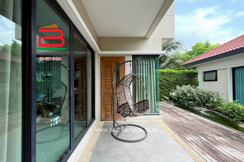 การตกแต่ง : บ้านเดี่ยวสุดหรู สไตล์รีสอร์ท (เจ้าของเปิดรับต่อรองราคาได้) บรรยากาศร่มรื่น เป็นส่วนตัว มีเรือนรับรองแยกส่วน พร้อมน้ำตกและบ่อปลา เหมาะสำหรับรองรับแขก หรือเป็นพื้นที่พักผ่อนภายในครอบครัว บิ้วอินตู้เสื้อผ้าทุกห้อง ฟรีเฟอร์นิเจอร์บางส่วน เช่น ตู้เสื้อผ้า เตียง โซฟา โต๊ะรับประทานอาหาร แอร์ 11 เครื่อง เครื่องทำน้ำอุ่น 5 เครื่อง ผ้าม่านทั้งหลัง
