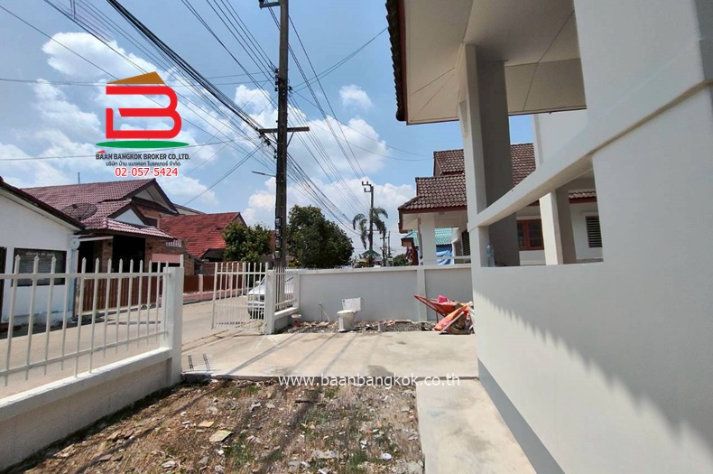 การตกแต่ง : สไตล์รีสอร์ท รีโนเวทใหม่ บ้านโปร่ง พื้นที่รอบบ้านเยอะ สามารถต่อเติมและทำกิจกรรมรอบบ้านได้ บรรยากาศดี เย็นสบาย เหมาะแก่การพักผ่อน พื้นปูปาร์เก้ มุ้งลวด เหล็กดัด ปั๊มน้ำ แท้งน้ำใหม่ มีรถตู้โดยสารวิ่งผ่าน ใกล้แนวรถไฟฟ้าสีส้มและสีชมพู