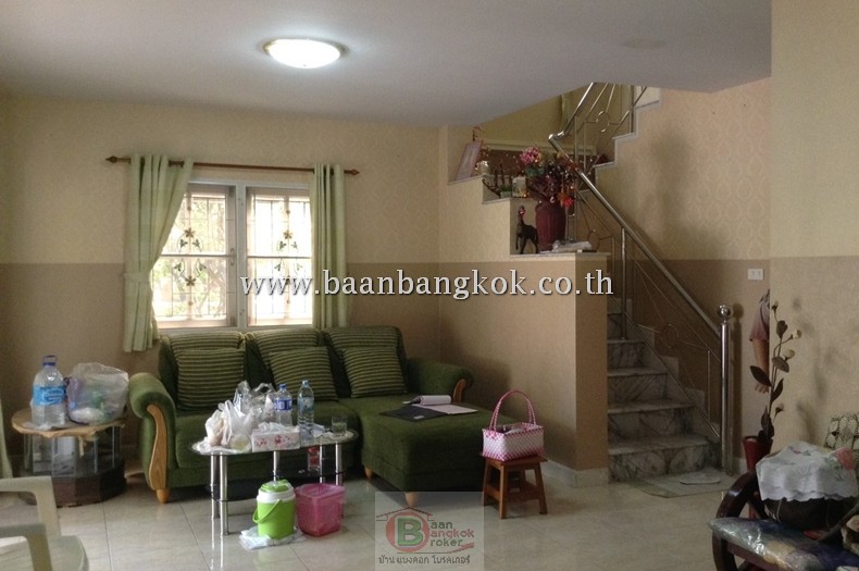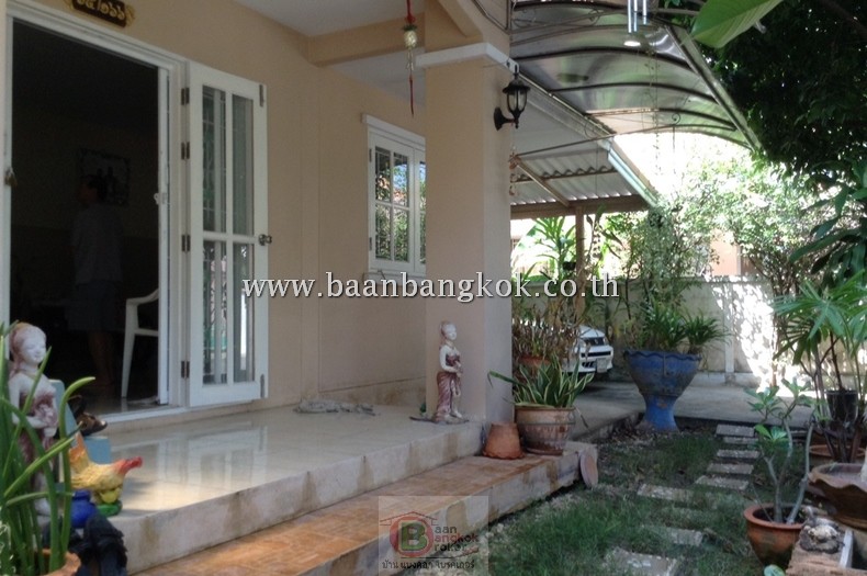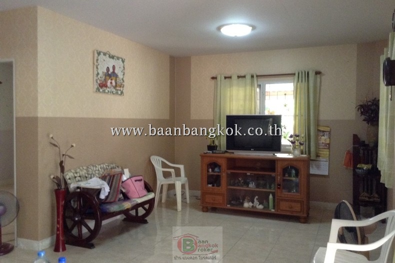 บ้านเดี่ยว // ต่อเติม // พื้นที่จัดสวนรอบบ้าน // (พิกัด : 13.96426321140,100.4219592276) ประเภททรัพย์สิน : บ้านเดี่ยว เนื้อที่ 55 ตรว. สูง 2 ชั้น 3 ห้องนอน 2 ห้องน้ำ + ห้องรับแขก (ต่อเติมเพิ่ม) พื้นล้างกระเบื้อง ผนังวอลเปเปอร์ ประตูหน้าบ้านเป็นเหล็ก ราวบันไดเป็นสแตนเลส พื้นที่จัดสวนรอบบ้าน แท้งค์น้ำสแตนเลส เครื่องทำน้ำอุ่น 2 เครื่อง แอร์ 1 ตัว ที่จอดรถ 1 คัน มีสวนสาธารณะ สนามบาส สนามฟุตบอล บึงน้ำ สระว่ายน้ำ สโมสร