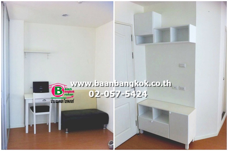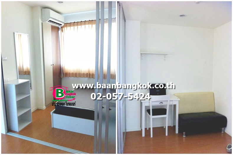 การตกแต่ง : พร้อมเฟอร์นิเจอร์บางส่วน อาทิ ตู้เย็น เตียงนอน โต๊ะทำงาน พื้นลามิเนต กั้นห้องแยกจากห้องรับแขก พร้อมผ้าม่าน แอร์ 1 ตัว และเครื่องทำน้ำอุ่น