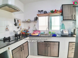 การตกแต่ง : พื้นบ้านชั้นบนปูด้วยลามิเนต พื้นบ้านชั้นล่างปูด้วยแกรนิตโต้ Build in ตู้เสื้อผ้าติดผนังห้องนอน ต่อเติมหลังคารอบบ้าน ภายในบ้านติดเหล็กดัด+มุ้งลวด+ผ้าม่านอย่างดี มีปั้มน้ำ+แท็งค์+เครื่องทำน้ำอุ่น พร้อมเเอร์ 3 ตัว ภายในโครงการมีสิ่งอำนวยความสะดวก อาทิ สโมสรขนาดใหญ่กว่า 10 ไร่,สระว่ายน้ำ,ฟิตเนส,สวนสาธารณะ,กล้องวงจรปิดรอบโครงการ,รปภ. 24 ชม.,Access Card Control